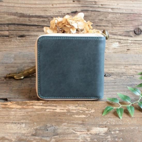 ワックスレザー ラウンド二つ折財布 / ブルー