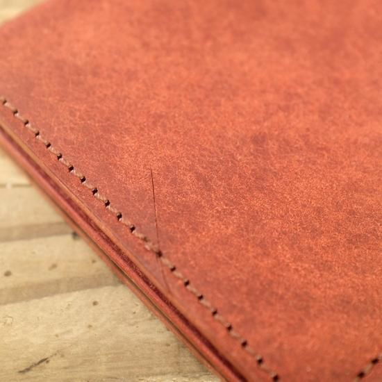 【アウトレット 30%OFF】プエブロ ビルケース(コンビカラー長札入れ)/ ブリックレッド #078革に切れ目あり