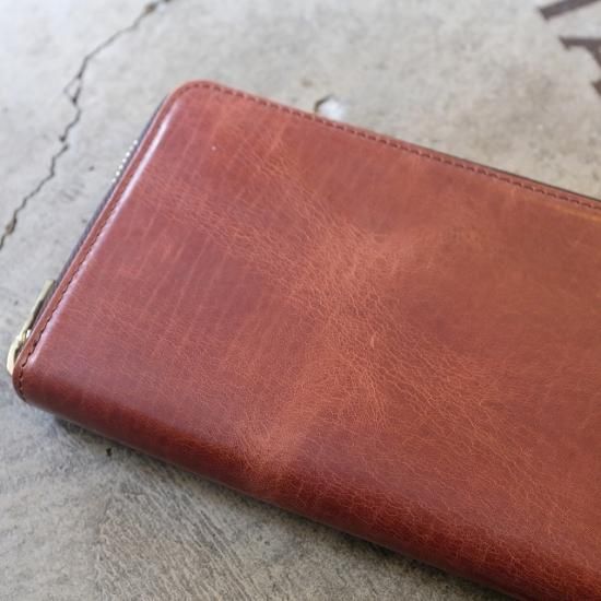 【アウトレット 30%OFF】ワックスレザー ラウンド長財布 / サンレッド #207 店頭展示・キズあり・経年変化あり