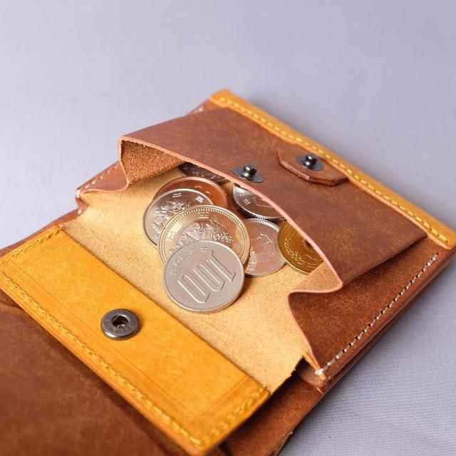 小銭は収納は約15枚、取り出しやすいようマチ付きの設計です。