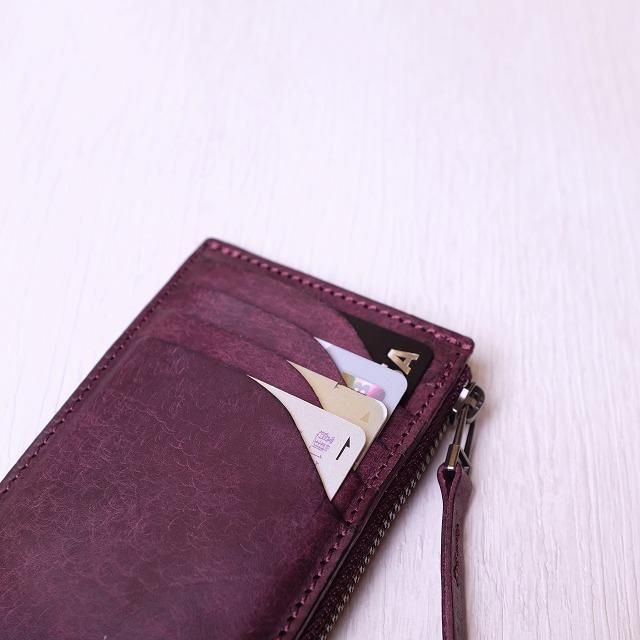お財布の代わりになる機能性を持ちながら、マチの少ないスリムなデザイン。