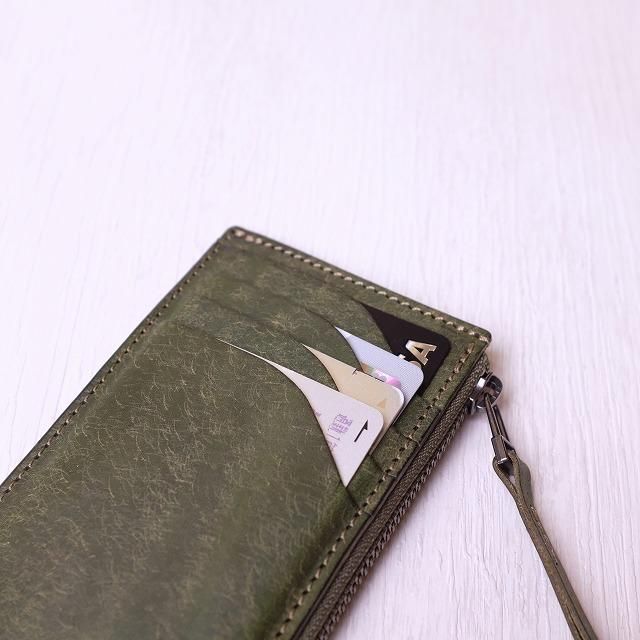 お財布の代わりになる機能性を持ちながら、マチの少ないスリムなデザイン。